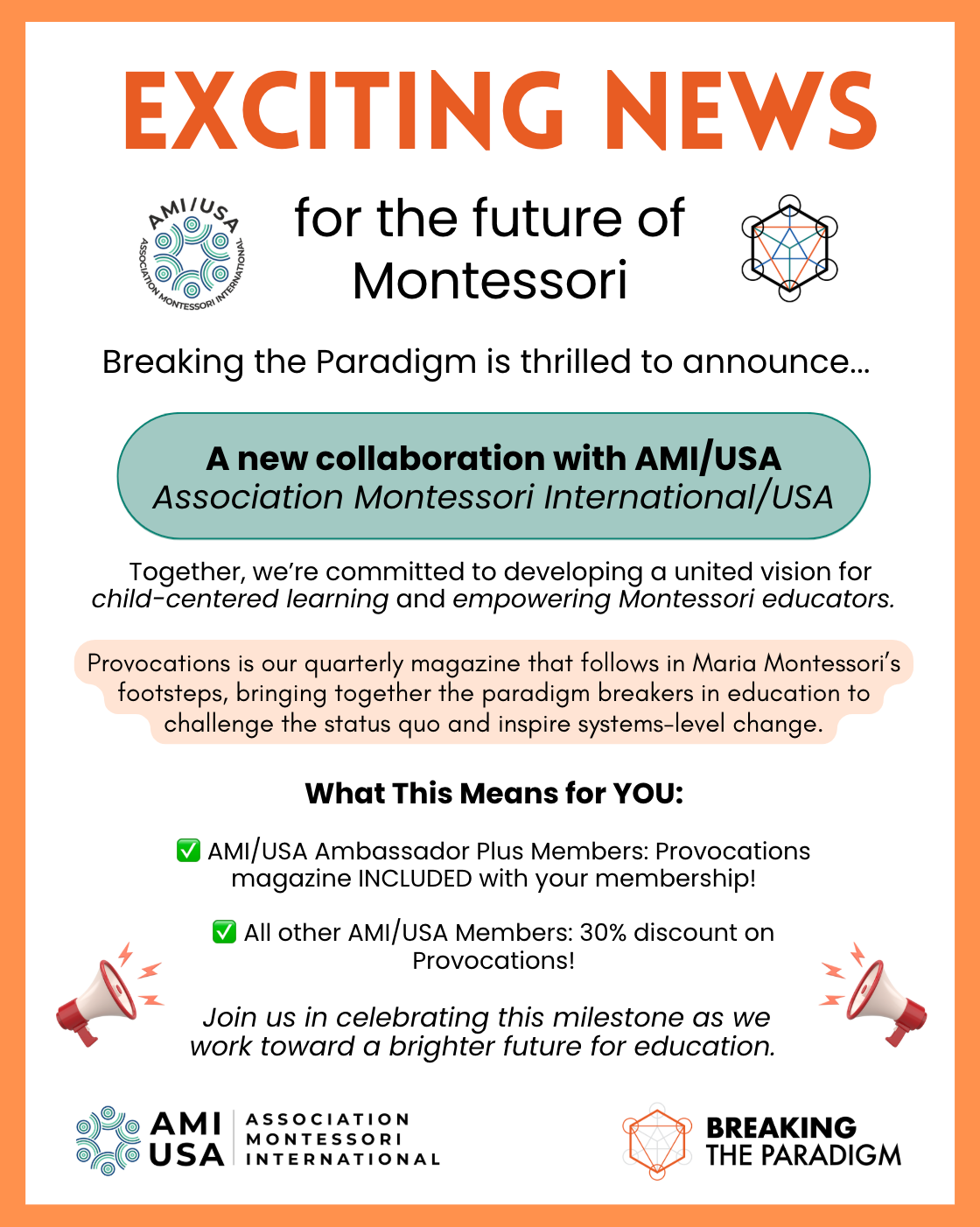 Breaking the Paradigm and Provocations Magazine are now in a special collaboration with Association Montessori International/USA (AMI/USA)!